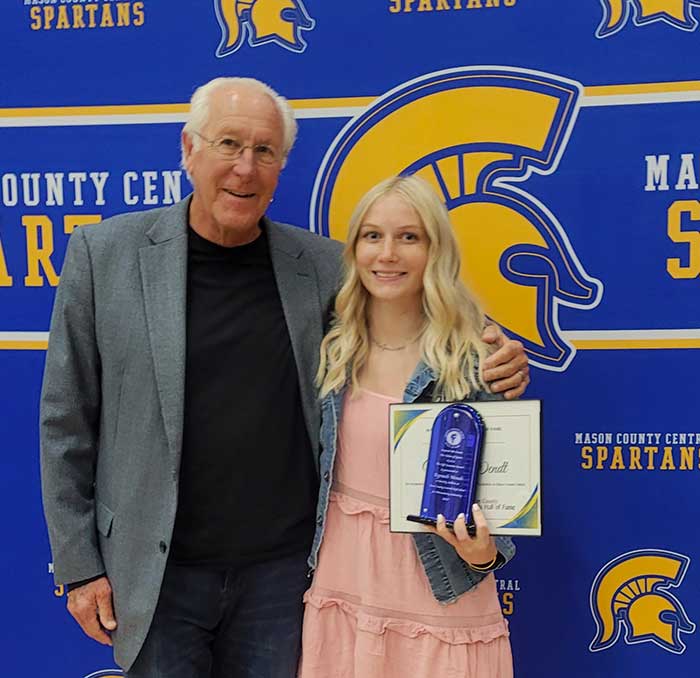 Nyvaeh, daughter of Syerra Wendt and the late Josh Boerma, started her freshman year at Mason County Central and struggled a bit academically. She was determined to improve, and she did. Through focus and hard work, Nyvaeh has improved her grade point average each year to a 2.8. All-State twice in wrestling, Nyvaeh has a scholarship to wrestle at Sienna Heights University in the fall. She was the captain of the wrestling team her senior year, earning 100 career wins and was the first female wrestler to be named all-state. Along with wrestling, Nyvaeh participated in cross country, softball and track & field, earning 12 varsity letters. The charity Nyvaeh chose as the recipient of the donation given in her honor by the Mason County Sports Hall of Fame is 5-Cap. Fighting through adversity and beating the odds is a life lesson we can all learn from Nyvaeh.